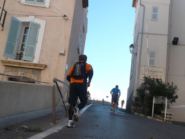 Nur einen Kilometer weiter, leider neben der Laufstrecke, liegt das alte Dorf Haut-de-Cagnes, das früher nur vom Olivenbau lebte. Zwischen alten knorrigen Olivenbäumen steht der prächtige Renaissancebau des Schlosses der Grimaldis. Hier lebte und malte von 1908 bis zu seinem Tode 1919 Renoir. Den Pinsel hatte er sich an seine arthritische Hand gebunden.