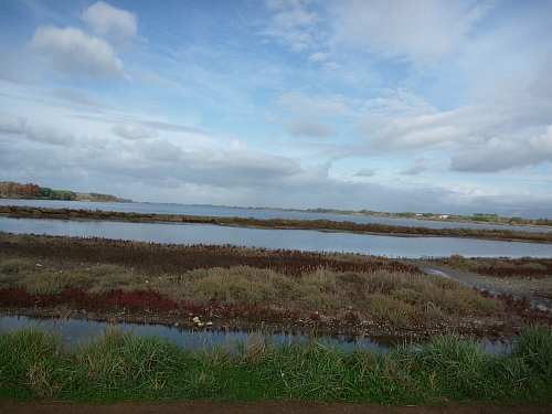 Der Horizont ist weit, eine weitere Stunde geht es wieder zurück, ewig weit geradeaus.Wer vor der Mainzer Landstrasse beim Frankfurt Marathon Angst hat, der stirbt hier an der Schwelle, ist eine Lusche. Hier kannst du nur mit dem Kopf laufen. Die Lagune ist jetzt rechter Hand, im Hintergrund die Wacholderdüne, die wir gelaufen sind.