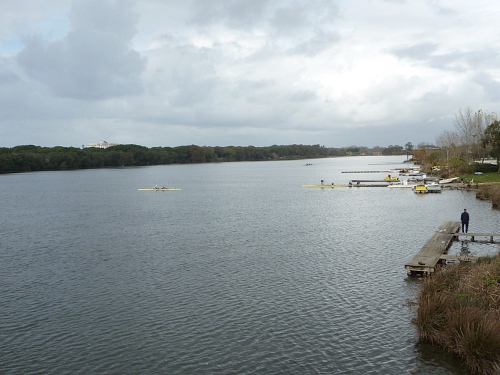 Es ist ein grandioser Genuß, als wir raus auf die Düne laufen. Von der Brücke über den natürlichen Kanal ein herrlicher Blick zum Kalksteinmassiv, auf der Lagune die zahlreichen Kanuteams. Links, am Ufer des Lago di Sabaudia der Palast des römischen Kaisers Domitian (1.Jahrh). Der Torre Paola dominiert in der Ferne den Kanal.