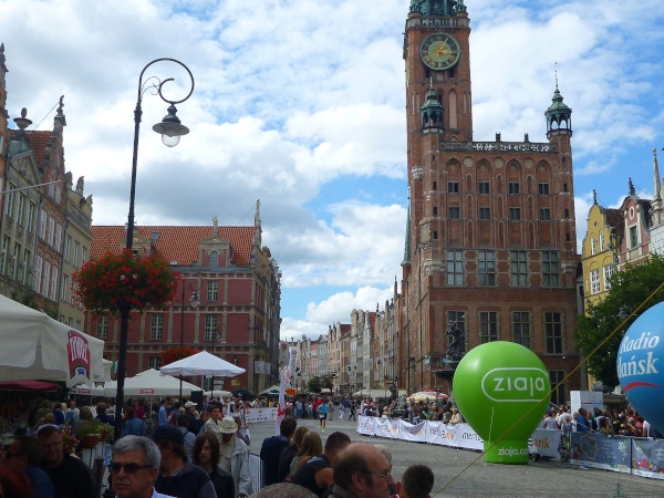 Bei der Halbmarathonzeitnahme beginnt der Höhepunkt des Rennens: die Strecke durch die Danziger Alt- und Rechtstadt. Die Rechtstadt, schon im 13.Jahrhundert Kern der späteren Hansestadt und geprägt von prunkvollen Kaufmanns- und Bürgerhäusern, ist das aktuelle Zentrum Gdanks. Von der Brücke über das Bahnhofsvorfeld sieht man den im Jahr 1900 fertiggestellten Hauptbahnhof und alle wichtigen Kirchen.