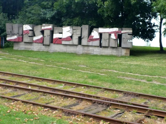 Linker Hand kann man noch einen russischen Panzer sehen und dahinter zwischen den Bäumen die Kräne der früheren Lenin-Werft gibt es auch ein Solidarnosc-Museum.