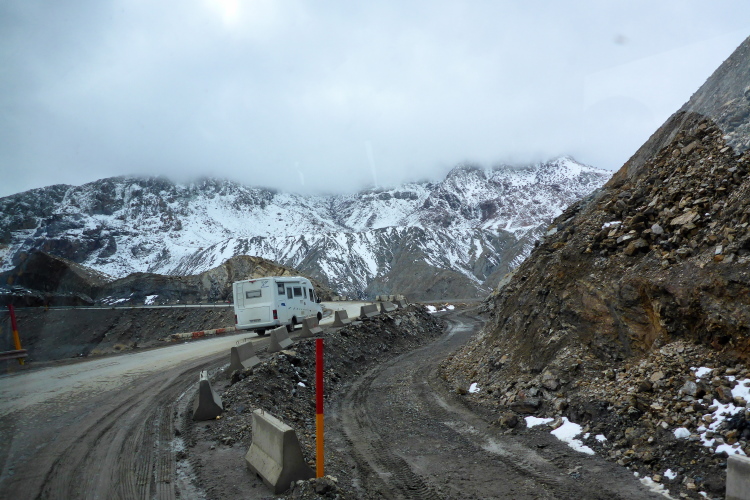 In Taddert, der Stadt mit den unzähligen Grillrestarants, stauen sich die schweren Fahrzeuge. Die Barriere de Neige wurde gerade erst geöffnet, die Strasse ist jetzt schneefrei. Unser Bus hat Vorrecht, wir dürfen durchbrettern.