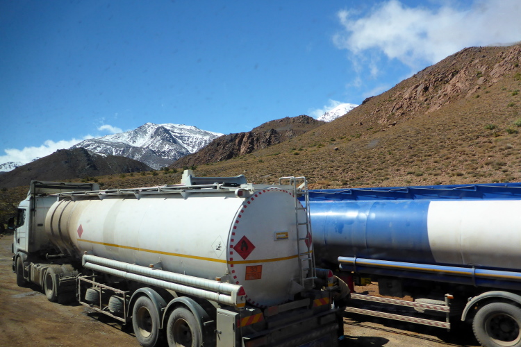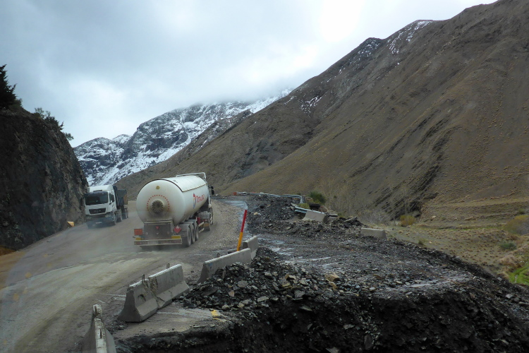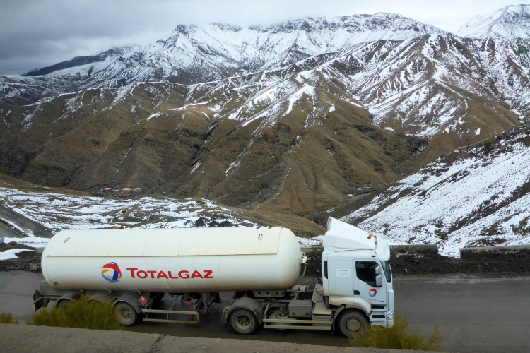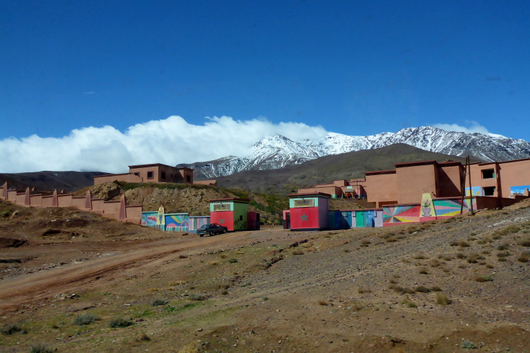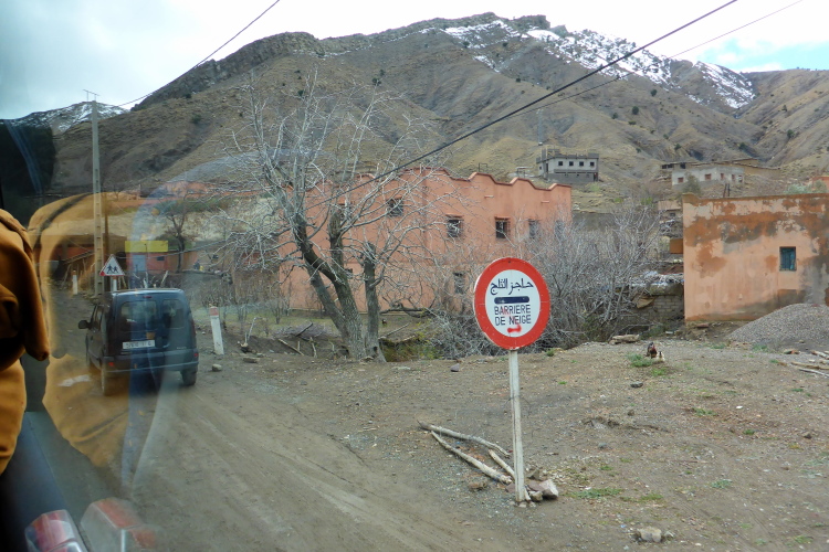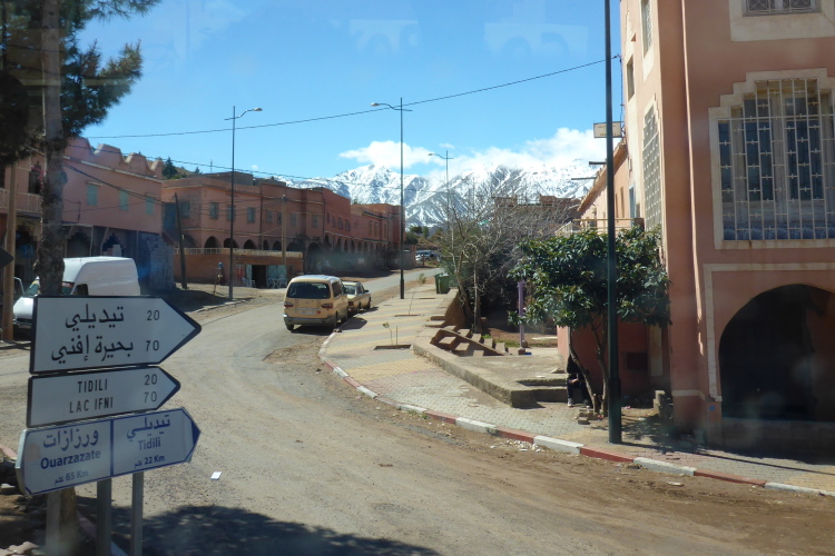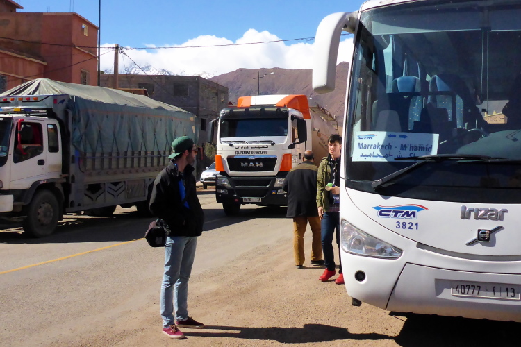 5 Stunden und 8,50 Euro braucht man für die Fahrt nach Ouarzazate. In all meinen Berichten schwärme ich von der wilden N9, die unwesentlich älter ist, als ich. Jetzt wird sie verbreitert, ich nicht. 40 Tote gab es 2014, ich hatte berichtet. Der erste Frontalzusammenstoß ereignet sich heute kurz hinter Marrakesch, die Blutspuren sind im Schnee nicht zu übersehen. Wer mit dem Bus der CTM (Companie de transports au Maroc) fährt, der kann sich sicher fühlen, relativ. Hier über die N9 brettern die Schwertransporter, die alles transportieren, was die Sahara braucht - Gas, Benzin, Kühe, Schafe und Menschen.