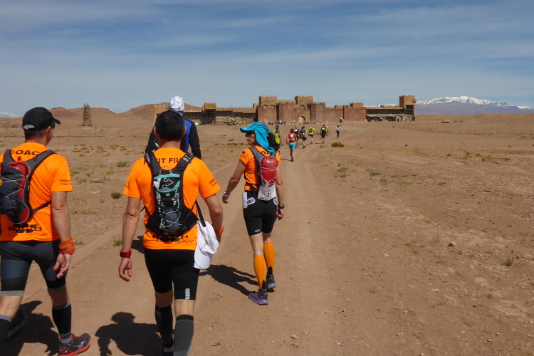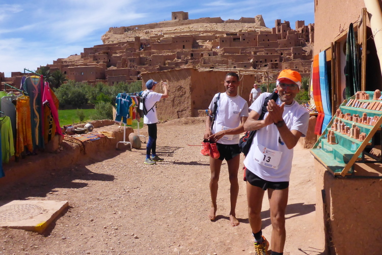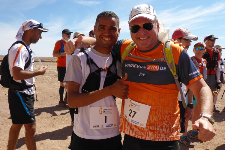 Tizi (sprich Tissi) ist ein Wort aus dem Berberdialekt des Hohen Atlas und bedeutet Bergweide. Wir starten unseren Bergweidentrail in Ouarzazate, der Marathon-des-Sables-Stadt in der Sahara. Es ist keine Gewalttour, wir laufen zwar hinauf in den Hohen Atlas, aber die 77 km teilen sich in drei Etappen auf. Es gibt kein Zeitlimit und in der Ausschreibung werden ausdrücklich Wanderer eingeladen. Mit Mohamed Elmorabity, dem Bruder von Rachid, dem mehrfachen MdS-Gewinner, ist beim Tizi`N Trail einen Hochleistungssportler, der auch die vierte Austragung dieses Trails gewinnen wird.