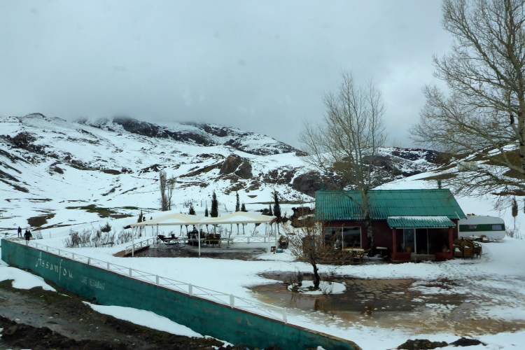 Oben am Pass, dem Tizi N´Tichka ( gefährliche Bergweide) ist die Trailstrecke des Trans Atlas Marathons (285 km 17.000 hm) sichtbar. Mir graust es bei diesem kalten Anblick, aber ich werde im Mai diesen Trail als zweitbester Deutscher finishen, es sei denn Tim Wortmann gibt vor mir auf.