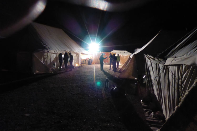 Die Nacht ist eisig kalt. Wir schlafen auf Matratzen in ausgelegten Zelten. Die bereitgestellte dicke Decke ist zwar gut, ich bin aber froh, noch einen Daunenschlafsack dabei zu haben.