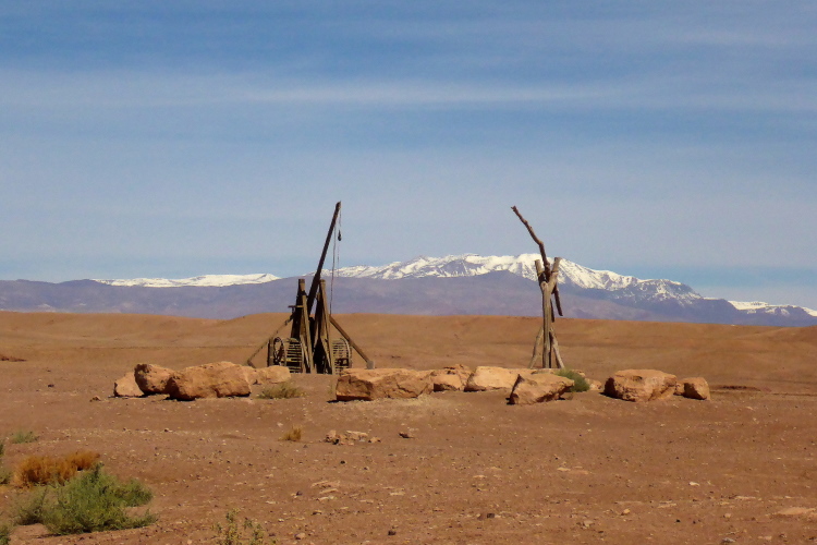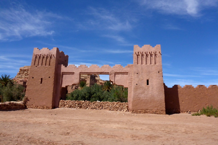 Das Reich der Berber ging in den neu gegründeten Staat Marokko auf. Der König kam 1955 aus seinem Exil in Madagaskar (meinem nächsten Trailrevier) zurück und machte Ouarzazate zum Hollywood Afrikas. Hier wurden viele der Sandalen- und Jesusfilme gedreht. Unser Startort ist in der Filmkulisse der Atlasstudios, genauer gesagt, im Bereich „Asterix und Obelix“ (Mission Kleopatra, mit Gerard Depardieu).