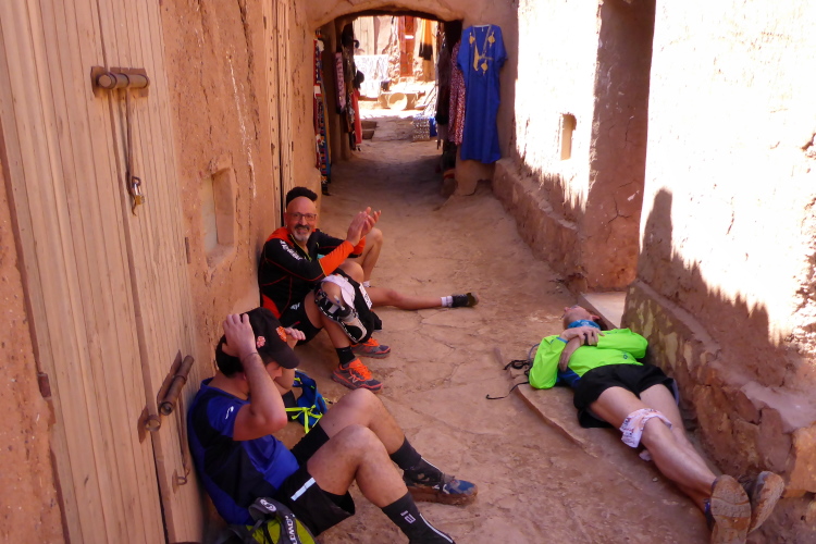 Im Empfangsgebäude des Hotels in Ouarzazate treffen wir Richard. Richard ist Chef von go2events und scheint nicht zu wissen, daß er ein Topevent anbietet. Seine Schützlinge haben die letzte Schneehorrornacht beim transmaroccaine überlebt, eine Konbination aus Laufen und Montainbiken über mehrere Tage. Sie putzen jetzt ihre Bikes und machen sich für den morgigen Trail fertig. Das beantwortet eine Frage, die mir in letzter Zeit öfters gestellt wird: