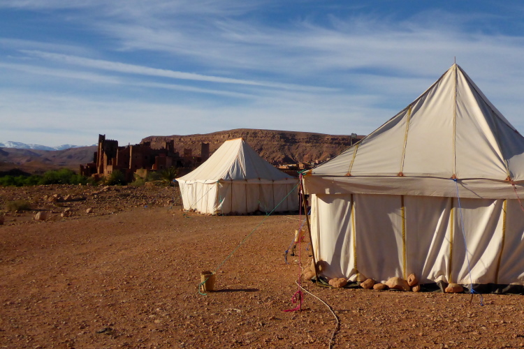 Das Camp (Bivouac) liegt gegenüber der Kasbah von Tamdatkht auf einem Fußballplatz. Die Wehrburg wurde vom letzen Pascha El Glaoui erbaut und wird jetzt von einer Frauenkooperative instandgehalten. Auf Deutsch: sie klatschen Lehm an die Wände und bekommen dafür ein paar Dirham von der Unesco.