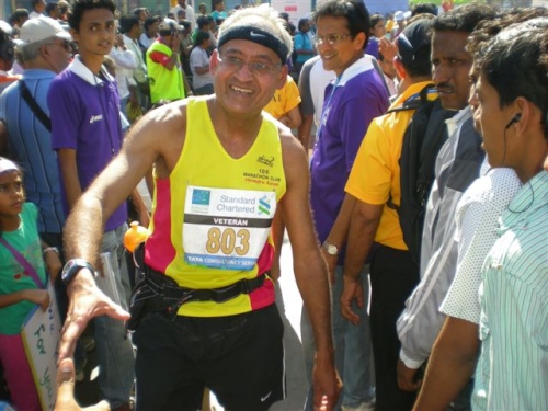 Nachdem die Geschäftstermine abgestimmt waren, wollte ich mich im Oktober online zum Marathon im Januar 2010 anmelden. Zu meiner großen Überraschung war das Teilnehmerlimit mit wohl 2000 Anmeldungen bereits erreicht und die Regristrierung schon geschlossen. Lange Telefonate mit den Organisatoren, die eine nachträgliche Aufnahme ablehnten, folgten Kontaktaufnahmen mit zwei Tageszeitung aus Mumbai, um meinen Unmut über das Verhalten der Organisatoren gegenüber einem Besucher aus dem Ausland los zu werden. Keine 2 Tage später erhielt ich die feste Zusage für meine Teilnahme!! Es war wohl auch hilfreich, dass ich vor 2 Jahren Sieger meiner Altersgruppe wurde (Siegprämie 500 USD!) und so wohl einen kleinen Sonderstaus hatte. Eine der größten Tageszeitungen hatte auch über meinen Besuch und meinen Lauf berichtet.