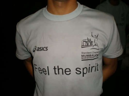 Trotz meines frühen Ausscheidens ist der Mumbai Marathon auch diesmal ein tolles Erlebnis für mich. Die Veranstaltung ist hervorragend organisiert. Schade ist, dass die Teilnehmer kein “Mumbai T-Shirt “ erhalten . Dies ist den vielen Helfern vorbehalten, die voller Stolz das schicke T-Shirts mit dem Aufdruck “feel the Spirit“ tragen. Es gibt keinen Leitsatz, der besser zu dieser Veranstaltung passt .