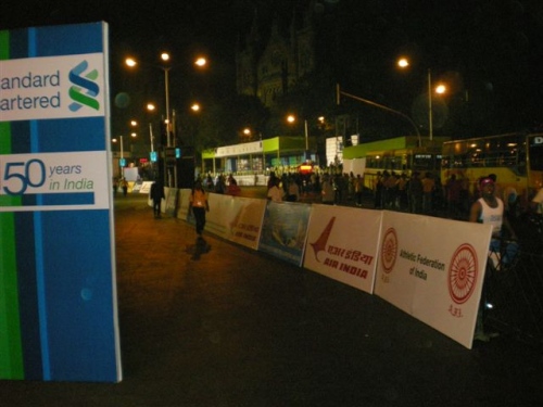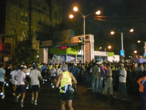 Mumbai, Samstagmorgen. Schon am Flughafen wird man durch eine nicht zu übersehende Plakatierung auf den Marathon aufmerksam. Die schwüle Luft , ca. 25 Grad und reges Treiben vor dem Flughafen geben einen Vorgeschmack auf das, was Marathonlaufen in diesen Breiten heißt. Mumbai, eine Stadt, die im Verkehrchaos und im Schmutz zu versinken scheint , zeigt auch bei meinem 6. Besuch in Indien ihr typisches Gesicht . Ein befreundeter Geschäftsmann hat mich vom Flughafen abgeholt und zum Hotel Nahe der berühmten “Victoria Railway Station“ gebracht und mich auch zum World Trade Center zur Abholung meiner Startunterlagen begleitet. In der kleinen aber sehr schön aufgemachten Sportsmesse erhält man ohne Komplikationen die Startunterlagen. Für ca. 25,- Euro Startgebühr gibt es einen Beutel, bedruck mit dem Wahrzeichen Mumbai’s, vielen Broschüren und Leckereien, dem Einweg-Chip und der Bib –Nummer.