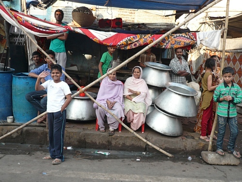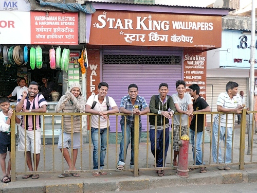 Fleißige Arbeiter sind damit beschäftigt, aus Pappe historische Fassaden für einen Bollywood Film aufzubauen. Angeblich sollen in Mumbai im Schnitt jeden Tag zwei Filme fertiggestellt werden.
