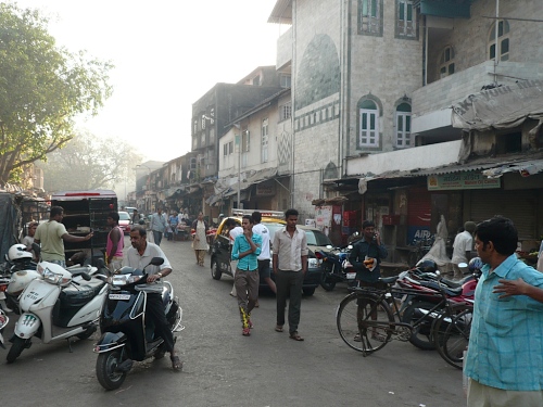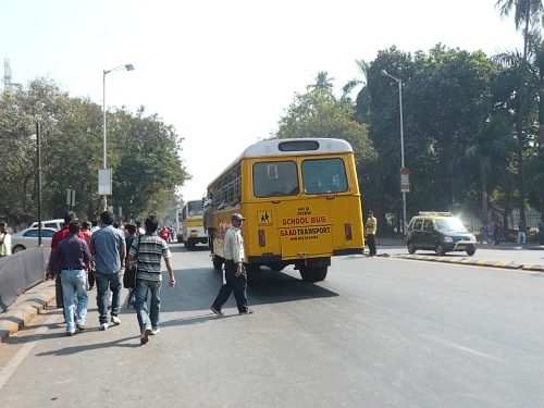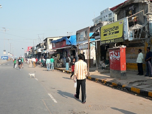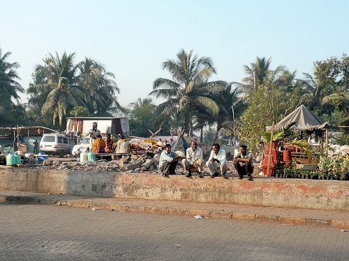 Es ist noch dunkel aber schon sehr warm, so um die 25°C. Wir folgen der Küstenstraße ca. 5km. Am nördlichen Punkt der Bucht befindet sich der Girgaon Chowpatty. Der Sandstrand ist Drehort vieler Bollywood Filme und Schauplatz, wenn Hunderte beim Ganesh-Chaturthi-Fest im Wasser mit dem Götzen eintauchen.