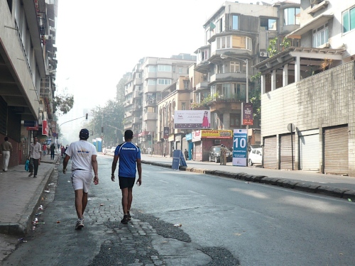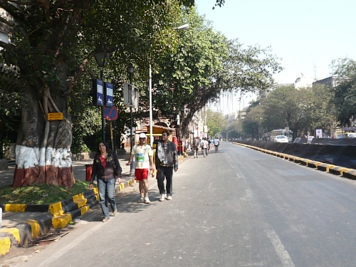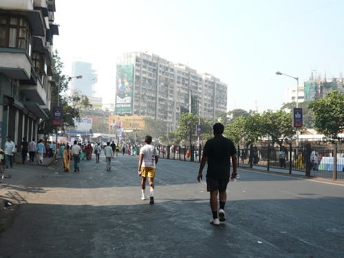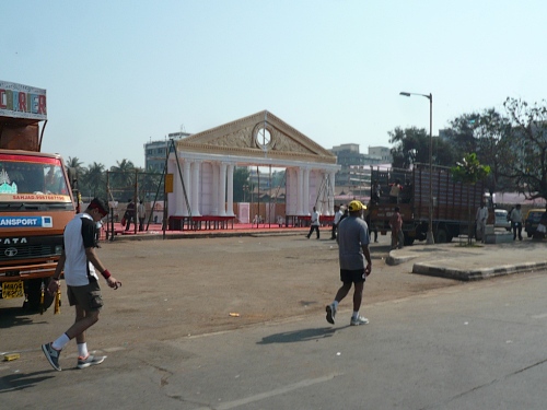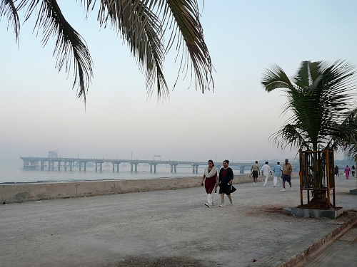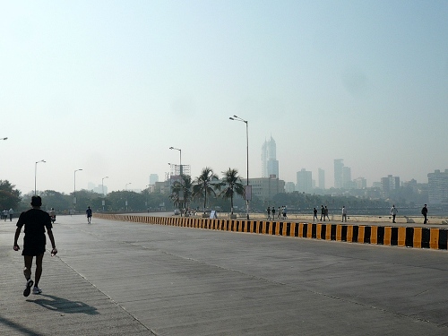 Auf den folgenden Kilometern bis zur nächsten Bucht laufen wir an verschiedenen Sportstätten vorbei. An Ende der Bucht ragt zur rechten Seite über einem Hügel der weiße Zylinder des 1972 erbauten Planetariums heraus. Wir kommen in den Stadtteil Worli, der früher eine der sieben Inseln war die heute Mumbai bilden.