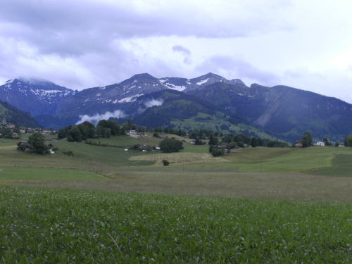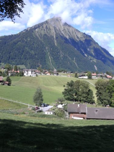 Frisch gestärkt freuen wir uns über die herausgekommene Sonne und wandern über die Sonnenterrasse und genießen die Blicke auf den Thuner See und den Niesen. Immer wieder schauen wir ungläubig auf den Berg, der immer noch seinen Gipfel hinter Wolken verbirgt. Auf einem Campingplatz in Krattingen lassen wir uns auf ein Getränk nieder und ein Gewitter an uns vorbeiziehen. Es schüttet wie aus Kübeln. Na also, so schlecht war das Wetter am frühen Morgen beim Lauf doch nicht. Es kann immer noch schlechter kommen.