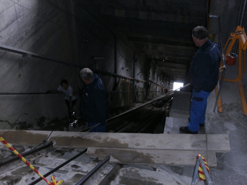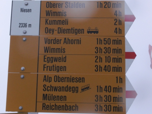 Auf dem Viadukt stößt ein Läufer vor mir einen entsetzten Schrei aus. Er hat eine Tafel mit der Aufschrift: „… nur noch 999 Stufen!“ gesehen. Ich fasse die Zahl als Aufmunterung auf und bin mir sicher, dass der vor mir liegende Tunnel der letzte ist. So ist es auch. Im Tunnel angekommen sehe hoch über mir die Bergstation mit einem Wagen der Niesenbahn.