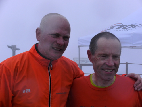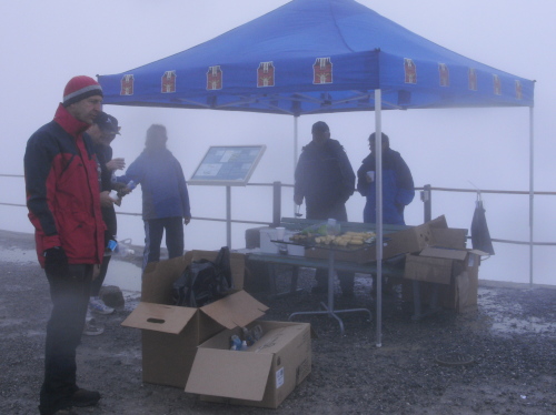 Da kommt auch schon Jens. Auch er hat es geschafft und froh und glücklich umarmen wir uns. Geschafft! Jetzt noch rasch ein Foto, zwei wärmende Bouillons trinken und ab hinunter zur Bergstation zum Kleiderwechsel.