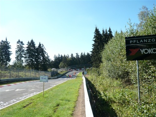„Eiskurve“, „Pflanzgarten“ und „Schwalbenschwanz“: wer hier noch Reserven hat, genießt das Auf und Ab, den unverwechselbaren Charakter dieses traditionsreichen Geläufs. Auch auf die Gefahr hin, daß es sich großkotzig anhört: Ich genieße diesen Abschnitt tatsächlich, es läuft absolut rund, ich kann das Tempo hoch halten und noch einige Plätze gutmachen, obwohl das natürlich völlig unwichtig ist. Unser Freund, der Sportfotograf Norbert Wilhelmi, kniet auf der Trasse, schießt einen nach dem anderen ab und freut sich, von einem bekannten Gesicht selber abgelichtet zu werden.