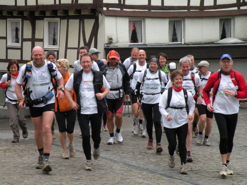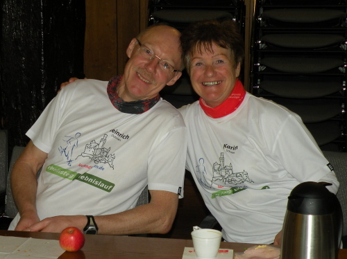 MdB Erwin Rüddel, der der damaligen Drogenbeauftragten der Bundesregierung, Sabine Bätzing (die auch schon für Laufend Helfen aktiv war), sehr überraschend das Direktmandat abgenommen hat, ist die ersten zwei Stunden mitgelaufen und klinkt sich hier aus, weil er am Nachmittag noch einen 10er in Engers laufen will. Respekt!