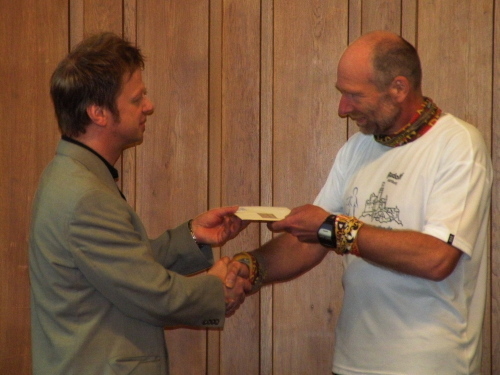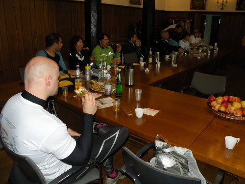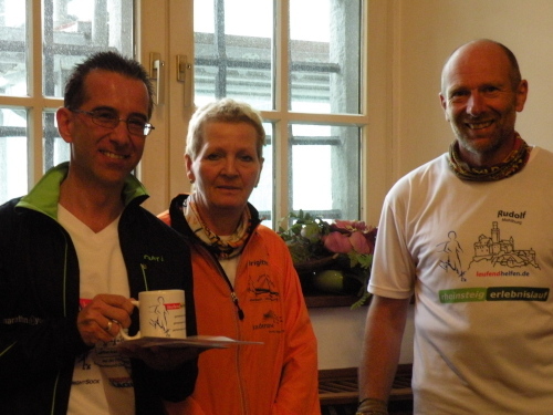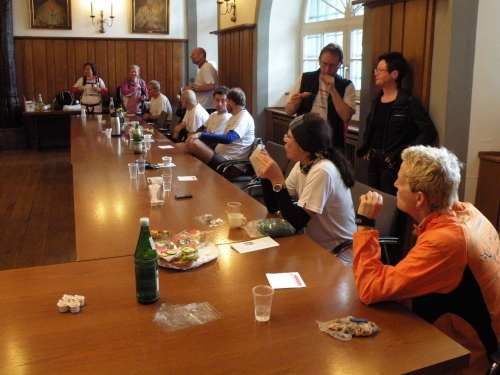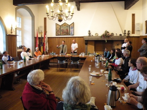 So ganz kann ich dem Verein doch nicht entsagen und da Elke in der Nähe einen Friseurtermin hat, finde ich mich in Linz im ehrwürdigen Sitzungssaal des Rathauses wieder. Hier hat die Stadt Linz in Person des Marketingchefs Tom Herschbach mit Lauffreundin Hannelore einen netten Empfang ausgerichtet.