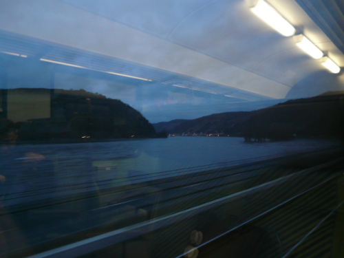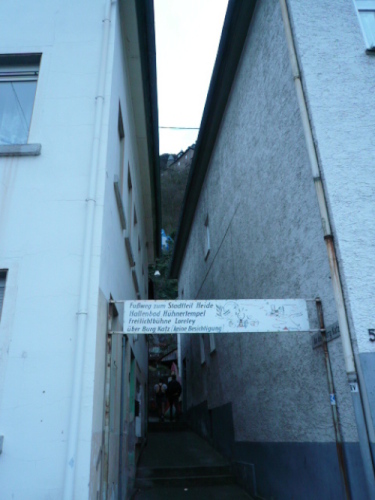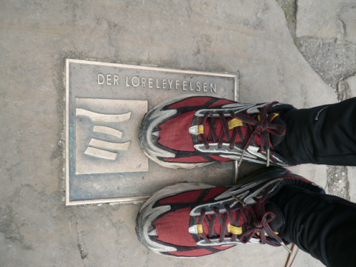Iiiiih – 4.45 Uhr Aufstehen. Mittlerweile ist der Troß doch schon ganz schön weit gekommen und ich fahre knapp anderthalb Stunden zum heutigen Etappenziel nach Assmannshausen (kurz vor Rüdesheim). Dort treffe ich verabredungsgemäß Ronald und Stefan; gemeinsam fahren wir mit der Bahn in 21 Minuten zum Startort St. Goarshausen an der Loreley und wandern 3 km bergauf zum Hotel, wo die Mannschaft die letzte Nacht verbracht hat.
