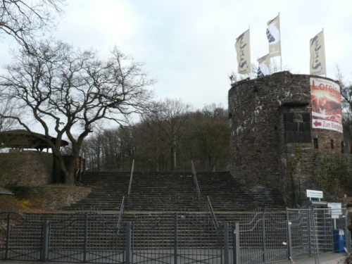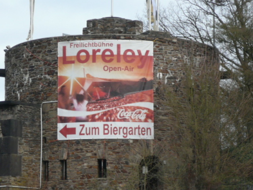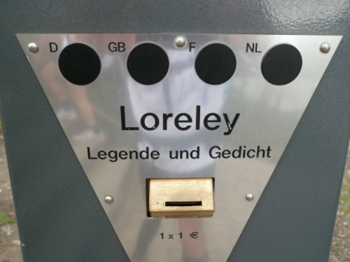 Um 8.30 Uhr wird, wie an jedem Tag, gestartet. Der Weg führt uns zunächst zum „Dreiburgenblick“. Die Burgen Katz, Maus und Rheinfels auf der anderen Seite sind erste Schmankerl fürs Auge. Und natürlich für die Kamera. Über den Galgenkopf und die Freilichtbühne (hier finden im Sommer Open Air-Konzerte statt) betreten wir den Loreleyfelsen. Dort saß sie, die sagenumwobene Blondine, und riß die Schiffer in diesem gefährlichen Rheinabschnitt ins Verderben. Hier kann man sich aus dem Automaten für einen Euro das Lied und Gedichte vortragen lassen. Einen steinernen Thron hat man ihr hier gebaut und natürlich sitzt prompt auch der Herr Bernath dort. Fünfzig Jahr, graues Haar, versteht sich.