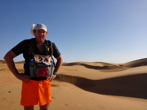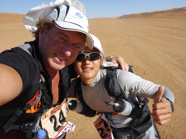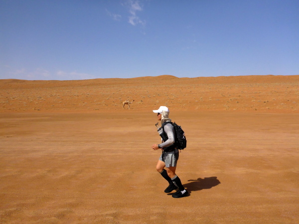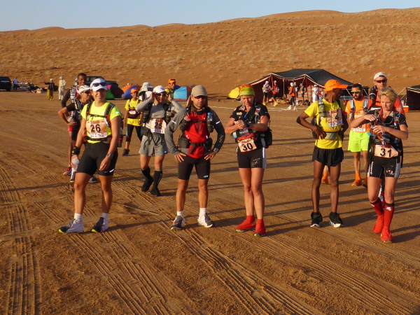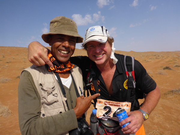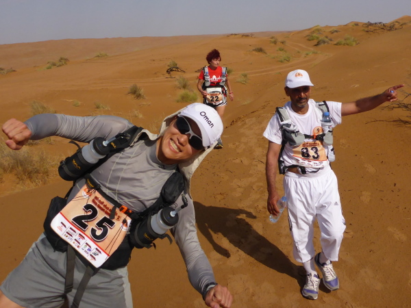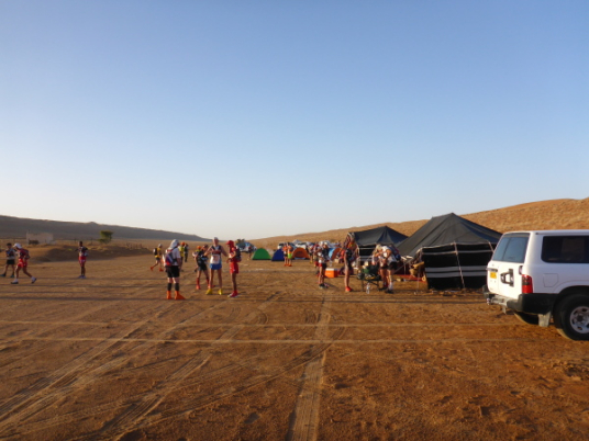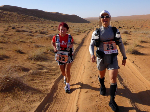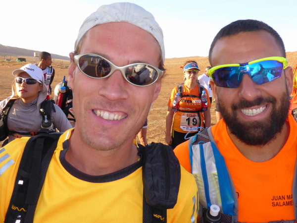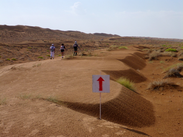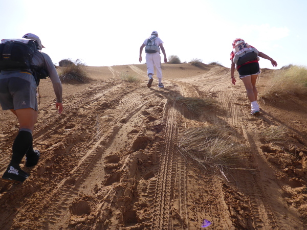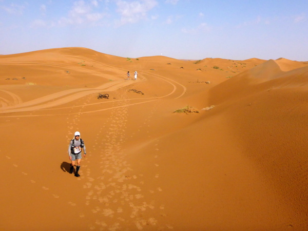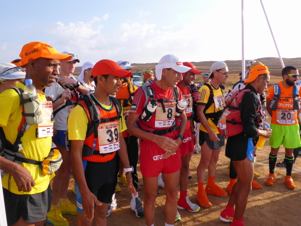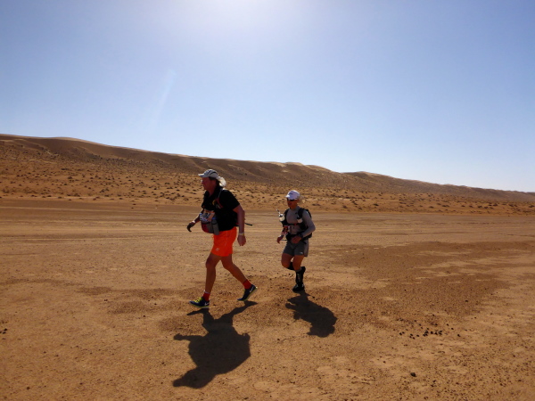 Die ersten drei Etappen sind zur Eingewöhnung, im Sand ist Tempolauf anstrengend. Wunderschön, traumhaft, bewegend, technisch nicht riskant. Drei Ärzteteams, unzählige Begleitfahrzeuge, ein Krankenwagen und zwei Polizeifahrzeuge überwachen die Laufstrecke. Es geht nach Süden, zunächst durch ein Tal. Doch bald geht es hinauf in den Sand.