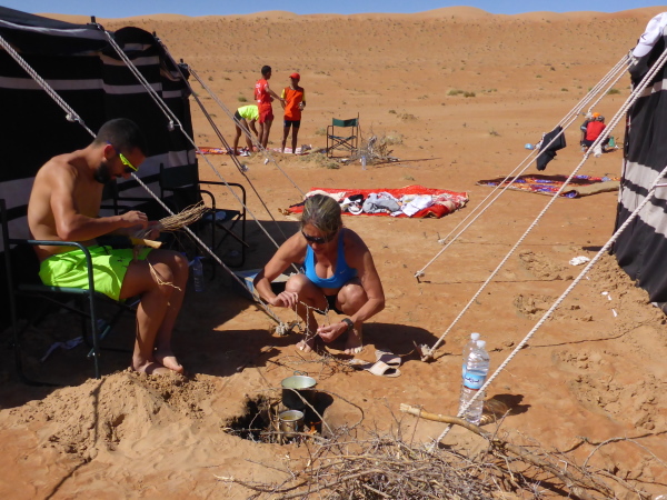 Hubert fährt ab sofort mit dem Begleittross mit. Er hat mit der Betreuung der Blinden im Camp genug Arbeit. Die beiden Kinder von Benoit sind perfekt mit Raidlight-Produkten ausgestattet, machen im Camp ihre Schularbeiten, während Benoit die Mails (über Sattelit) bearbeitet. Nein, es gibt kein Handyempfang, GPS Empfang selten. Es wird viel geschlafen.
