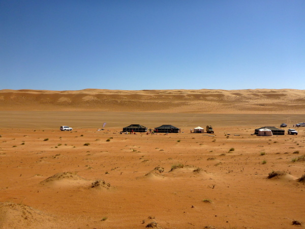 Auf der Luv-Seite der Dünen versinkt man schienbeintief. Die Luft flimmert, die Sonne brennt, aber es ist mein Tag. Ich mache mit meinem Lauf einige Plätze gut, komme sehr zufrieden im Camp an. Hamoud hängt wieder am Tropf.
