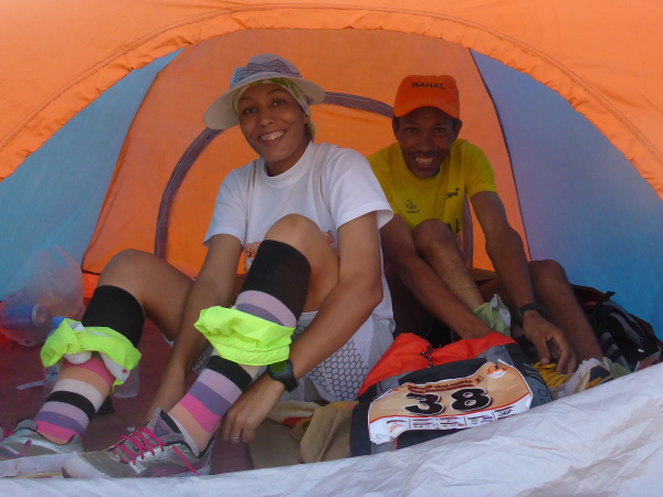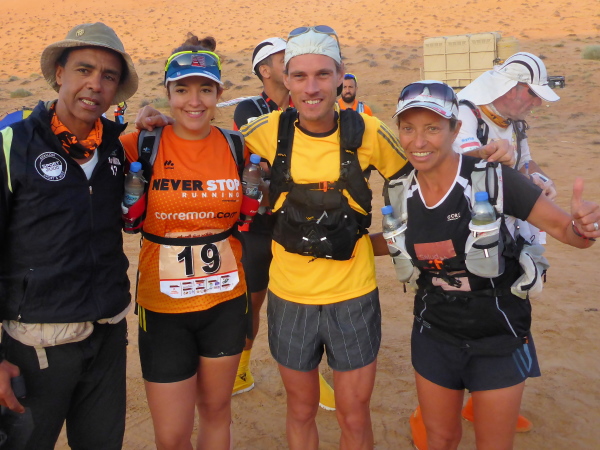 Iamad, Salom, Mohamed, Achmed, alle versägen mich schon sehr früh. Hanna, die Polin, saust mit ihren kurzen Trippelschritten vorbei, doch dann verirrt sie sich. Ein Pfiff auf der Notfallpfeife und sie sieht mich vom Dünenkamm aus. Wir müssen runter von den Dünen. Das macht man nur widerwillig, wenn man keine Markierung sieht. Ein Grund, warum ich nicht mit Kontaktlinsen und Sonnenbrille laufe.