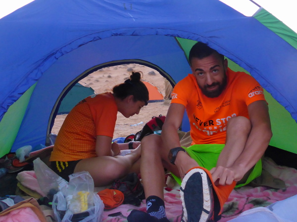 Abreise mitten in der Nacht. Die Augen und das Herz übervoll mit Eindrücken einer grandiosen Landschaft und absolut herzlicher Menschen. Neue Lauffreundschaften geschlossen, alte gefestigt. Einer der schönsten Läufe ist vorbei, nicht jedoch der Sand. Rot, gelb und weiß verteilt er sich im Flieger, jedes Korn eine sehnsuchtvolle Erinnerung an eine traumhafte Laufzeit.