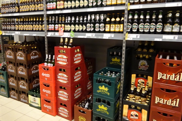 Ich spaziere ins nahe Einkaufszentrum, gelange über die Rolltreppen in den dritten Stock hinauf und finde hier zahlreiche Schnellimbiss-Betreiber vor. Das scharf gewürzte Schweinefleisch mit Hühnchenbeigaben und Reis um 100 CZK (4 Euro) bei einem Asiaten schmeckt vorzüglich. Fast food und Kaffeehauskultur gibt es dicht nebeneinander –ich gönne mir eine Topfentorte mit einem Latte macchiato als Draufgabe. Im Tiefparterre befindet sich ein Supermarkt. Wann immer ich in der Slowakei, Tschechien oder Polen bin, schaue ich in der Bierabteilung vorbei.