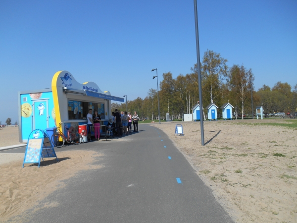 Wir fangen wieder an zu laufen. Schön kann das nicht ausgesehen haben, aber unsere 7min/km-Schritte bringen uns auf diese Weise immerhin weiter und bis zur letzten Verpflegungsstelle bei KM 38,9. Mittlerweile liegen hier keine Menschen mehr am Strand und die Eisstände bedienen die letzten Kunden, während schon Tische und Stühle zusammengestellt werden. Auf der restlichen Strecke begegnen uns außer den eisern ausharrenden Streckenposten kaum noch Menschen und absolut keine Läufer mehr. Die letzte und älteste Läuferin (AK 65-70) hatte uns bei KM 32 eingeholt und erreicht das Ziel nach 5:28 Stunden das Ziel.