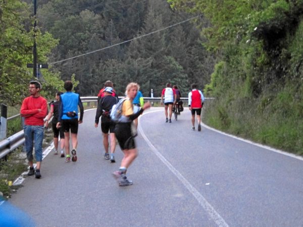Auf welliger Strecke ging es so bis bei Kilometer 31,5 Borgo S. Lorenzo erreicht war. Insgesamt vier Stunden waren wir unterwegs und lagen damit gut in der Zeit, die ich geplant hatte. Der leichte Abschnitt war nun aber vorbei, ab jetzt würde es aufwärts gehen, von 195m hoch auf 913m zum 2. Gipfel, dem Colla di Casaglia bei km 48.