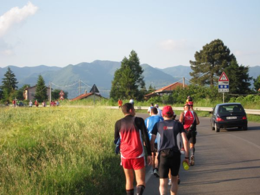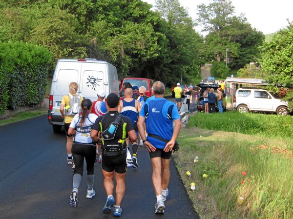 Ronta erreicht, km 38, es war 20 Uhr, die Sonne stand tief am Horizont und es war jetzt merklich kühler geworden. Die Bergkette war längst erreicht, wir hatten leicht Höhe gewonnen, aber ab jetzt ging es spürbar hoch. Viele marschierten jetzt, wir drosselten lediglich das Tempo und konnten gut weiter joggen. Angelika war immer ein paar Meter vorne, machte Druck und ich ächzte hinterher. Nur an den ganz steilen Abschnitten marschierten wir jeweils ein paar Dutzend Meter. Hans hatte sich längst nach vorne verabschiedet, er wollte heute seine Zeit vom Vorjahr (14h13min) unterbieten und schaffte das dann auch ganz locker; nach insgesamt 13h33min war er im Ziel.