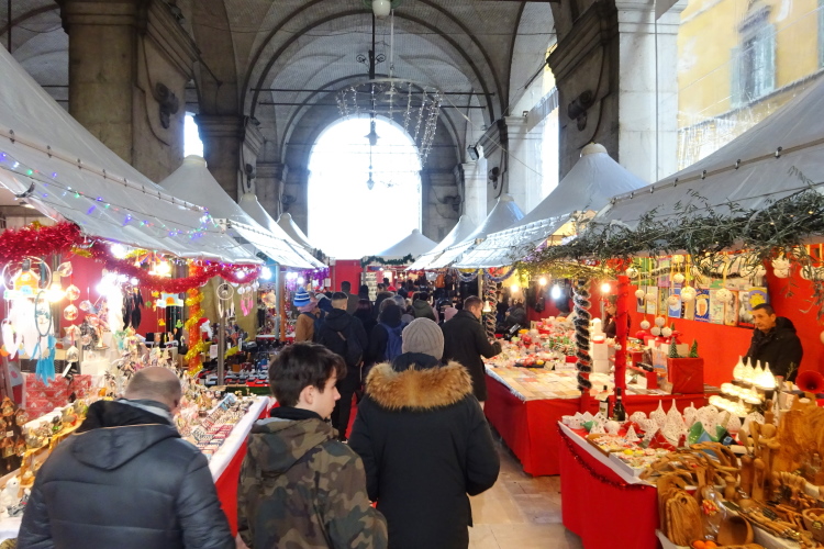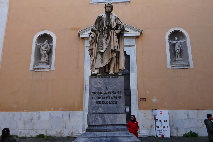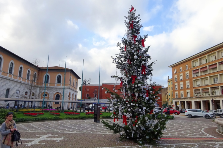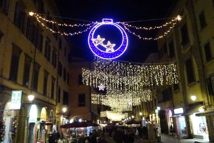 Die von meinem Hotel wohl gut 2 km Fußweg entfernte Expo im Universitätssportzentrum an der Via Federico Chiarugi öffnet heute ab 10 Uhr. Ich habe nicht nur ausreichend Zeit für das Frühstück, sondern auch um auf Umwegen durch die Stadt zu spazieren. Von der Piazza Emanuele II, benannt nach dem König von Sardinien-Piemont und an der Spitze der italienischen Einigungsbewegung Risorgimento stehend ab 1861 auch von Italien, schlendere ich auf dem um diese Tageszeit noch nicht belebten, aber vorweihnachtlich mit Lichterketten geschmückten Corso Italia zum Arno rauf.