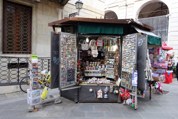 Überrascht bin ich über die braunen Wassermassen, die momentan der in den nördlichen Apenninen entspringende, nur 241 km lange Fluss Arno mit sich führt, dessen tiefes Bett von einer beidseitig des Lungarno meterhohen Kaimauer, die durch aufgetürmte Sandsäcke zusätzlich abgesichert ist, auf Hochwassergefahr verweist. Treibholz hat sich in den Auffangrechen unter der Brücke verfangen. Aber in Italien ist ja im Winter Regen angesagt, wenngleich dieser in der Toskana vielleicht geringer ausfällt als an der Adria.