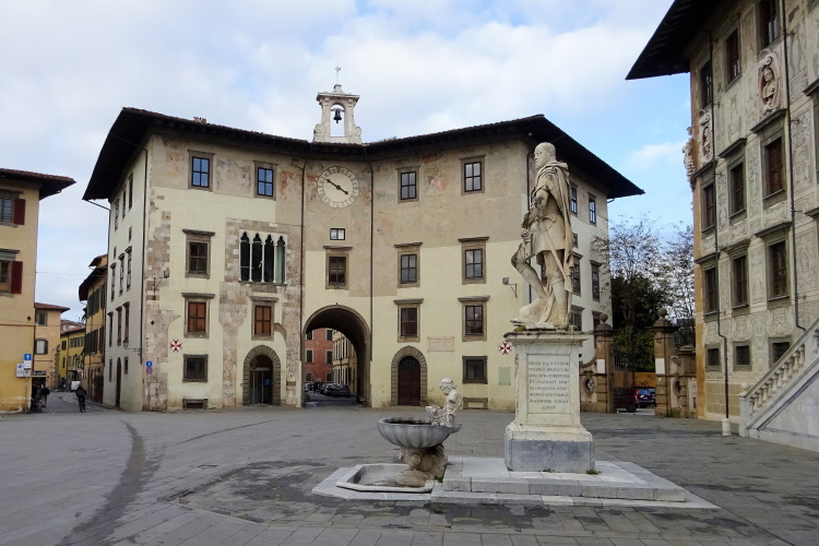 Von der Piazza XX Septembre – am 20. September 1870 wurde Rom von Truppen des neugegründeten italienischen Staats eingenommen und der Kirchenstaat hörte auf zu existieren – betrete ich die von Touristen am Wege zum Torre pendente zumeist frequentierte Ponte Di Mezzo, die den nördlichen mit dem südlichen Teil von Pisa verbindet. Von hier aus bekommt man tagsüber einen weiten und herrlichen Blick über die Stadt und den Verlauf des Flusses.