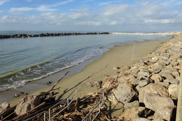 Nun heißt die Devise, hier in Marina di Pisa entlang von herrlichen Seebädern mit klingenden Namen wie Meloria oder Alberto Boden gut zu machen. Es ist erst 12 Uhr mittags, Ausflügler aus Pisa sowie Einheimische spazieren uns am Gehsteig entgegen, man sitzt auf Bänken in der Sonne. Sonnenschein, milde Temperaturen sowie einzelne Sandstrände geschützt durch massiv aufgetürmte Felsbrocken gegen hohe Wellen vom Meer machen den Marathon auf diesem Abschnitt zu einem echten Erlebnis. Ja, richtig Urlaubsstimmung kommt bei mir auf. Und ich kann gleich drei Läufer ein- und überholen, obgleich mich die „totgeglaubte“ Elisabetta bei Kilometer 25 wieder schnappt.