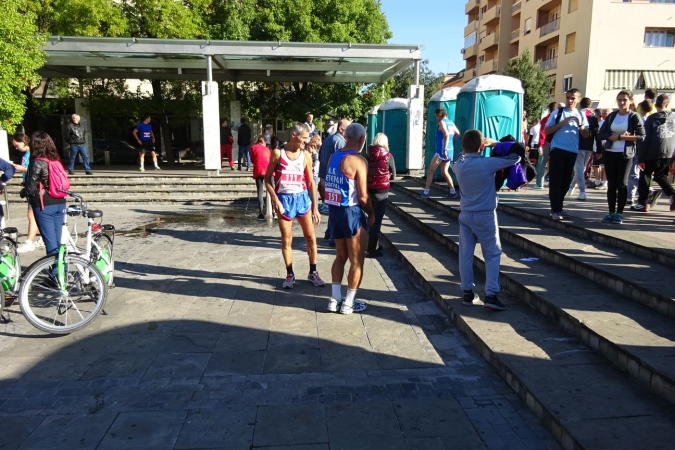 Und alle Kumpels sind wieder da. Selbst wenn man kaum über ihr Leben Bescheid weiß, man kennt sich vom Sehen und Smalltalk. Der serbische 4:30-Pacemaker von Katowice, Drago Boroja mit der Startnummer 154, der jetzt in Polen lebt und Ansprechperson für den Gratis-Bustransfer von Belgrad und Novi Sad nach Podgorica war, ist ebenso anwesend wie der unverwüstliche Vojislav Curulic (Nummer 202) aus Belgrad , dessen steifer Arm ihn bei den Marathons nicht behindert – beide sind Jahrgang 1953 und imstande, locker unter 4 Stunden zu finishen. Wie oft habe ich schon betont, dass mir diese Läufertypen gefallen, die den Sportgeist über alles stellen.