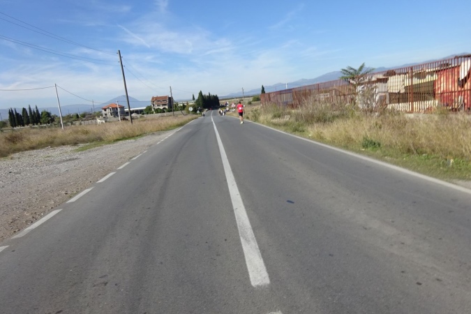 Bei Kilometer 27 ½ haben die Helfer ein Leitungsrohr an der Straße geöffnet, dort sprudelt Wasser heraus, welches sie in schon benutzte Flaschen abfüllen. Die Erleichterung ist spürbar, doch die Kräfte, die man für einen Marathon benötigt, kommen nicht zurück. Etwas zerknirscht nehme ich zur Kenntnis, dass mich nun ein weiterer Kollege knapp vor der Kleinstadt Tuzi einholt. Es ist zum Weinen, der Mann mit der Nummer 135 ist ein Oldie, mindestens 65 und hat einen Laufschritt wie ein Gehbehinderter. Da sind jene Momente, die einem die Freude nehmen, wenn ein „Hatscherter“ davongaloppiert.