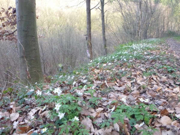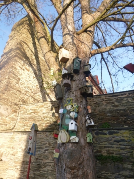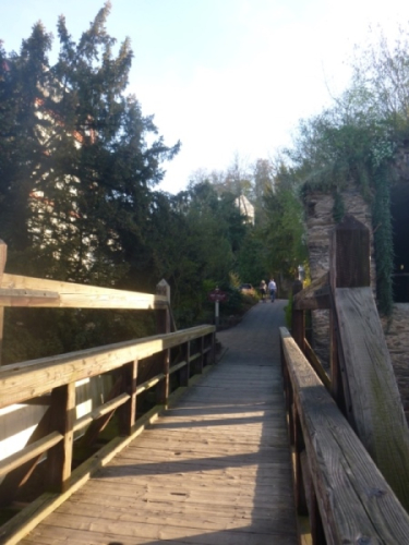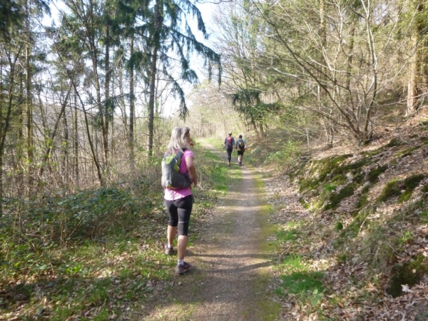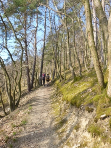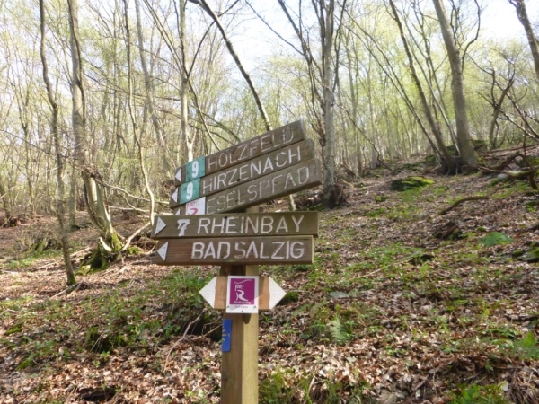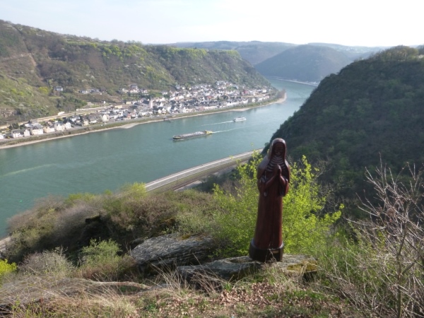 Frisch gestärkt brachen wir zum letzten Streckenabschnitt nach Bingen auf. Der RBW befand sich nun zum größten Teil auf den Anhöhen und schlängelte sich entlang der Wiesen und Felder. Manchmal ging es auch weitab vom Rheintal in die Seitentäler hinein. Doch immer wieder kamen wir zurück ans steile Rheinufer und in die Weinberge. In Niederheimbach beeindruckte uns der Märchenhain, der uns entlang eines Pflasterweges Szenen aus bekannten Märchen zeigte. Kurz hinter Niederheimbach verließen wir dann das Rheinufer, um durch das Morgenbachtal auf wunderschönen Wegen um Trechtingshausen zu laufen.