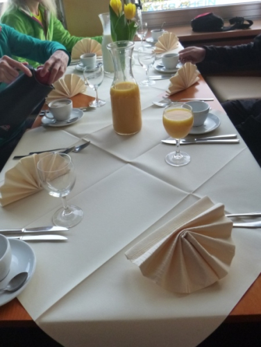 Bald meldete sich auch der leere Magen und wir freuten uns über die Zeitumstellung. Die Uhr wurde in dieser Nacht auf die Sommerzeit um eine Stunde vorgestellt und so war das Warten bis zum Frühstück für uns glücklicherweise um eine Stunde verkürzt.