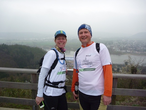 Der Rheinsteig Erlebnislauf wird von Brigitte und Rolf Mahlburg, den m4y-Heroes 2011 zum siebten Mal organisiert, vorhergehende Läufe ergaben eine Länge von 360 km.