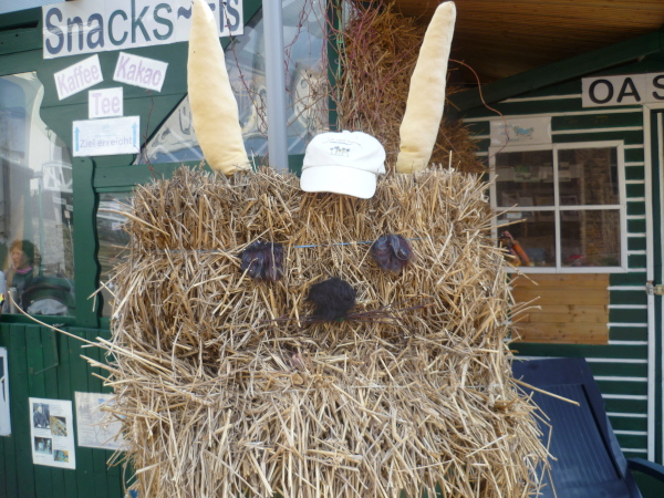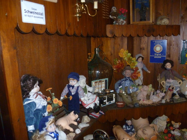 Es folgt der steile Abstieg nach Wellmich über dem majestätisch die Burg Maus thront. Im "Saustall" wartet bereits die heiß ersehnte Gemüsesuppe. Das niedliche Gasthaus Germania hat seit 2001 den auch leicht missverständlichen Beinamen Saustall. Der Name rührt her von einem lebenden Schwein, das die Wirtin damals geschenkt bekommen hatte. Seither haben viele Gäste dazu beigetragen, dass sich eine beachtliche Schweinesammlung im urigen Gastraum tummelt. Rolf bittet uns die Rucksäcke im geräumigen Nebenraum zu lassen. Eine ungeschickte Bewegung und eine größere "Schweinerei" (die meisten Exponate sind zerbrechlich) könnte die Folge sein.