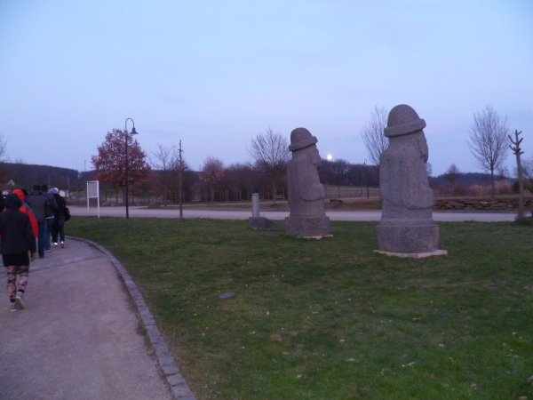 Wir bauen uns vor dem Tor auf und lassen uns fotografieren. Obwohl es heute nicht ganz so kalt ist, machen wir uns zügig auf den Weg. Es geht zunächst bergauf. Schnell wird mir warm.