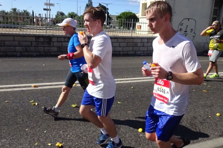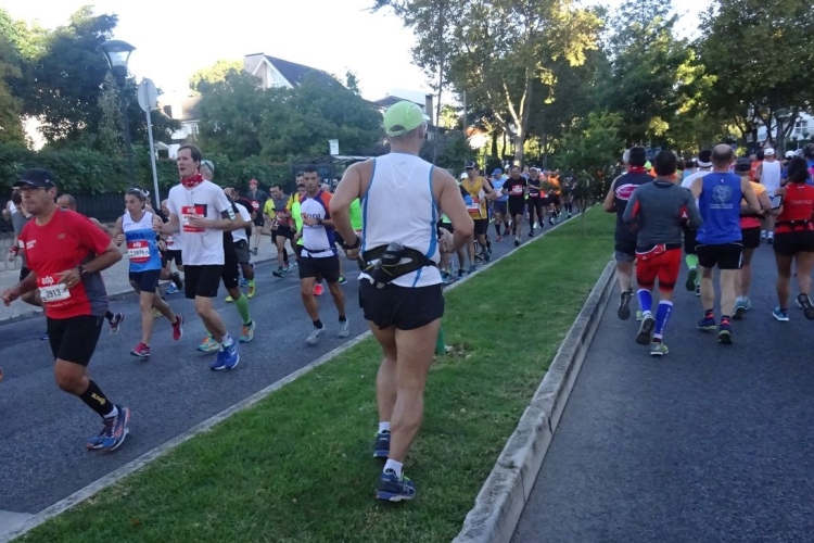 Das Teilstück der N6 trägt den Namen Av. Brasilia und ist im Vergleich zu den langen Anstiegen auf den ersten 15 Kilometern angenehm flach, doch wie man so erlebt, beginnt der Marathon ja erst bei Kilometer 30 oder 35. Ich wundere mich, dass von hinten nichts nachkommt und ich dafür auf Kollegen auflaufe, die bereits im Gehtempo unterwegs sind. Nach Kilometer 27,5 werden Gels verteilt – ziemlich dünnflüssig, sodass man den Energieschub nicht mit Wasser runterspülen muss.