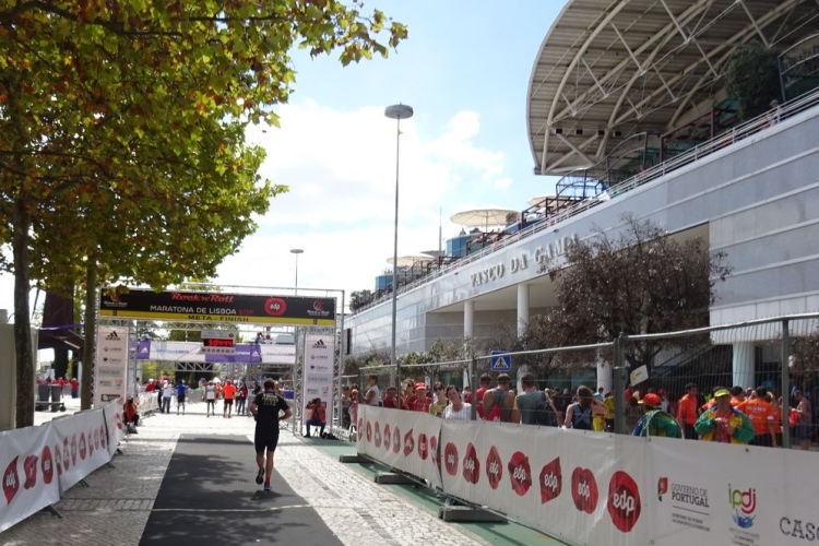 Die letzten Kilometer des Marathons führen auf leicht ansteigendem Terrain. In einer 180 Grad-Wende geht es in die Zielgerade entlang der Alameda dos Ocenanos. So knapp vor dem Ziel gebe ich meine Taktik des Walk & Run auf, wegen der vielen Zuschauer, die das falsch interpretieren würden – vor dem Ziel gibt man noch einmal alles, wenn man kann. Leider geht sich eine Zeit unter 5 Stunden wieder knapp nicht aus – ich finishe mit 5:04:54, netto um 5:02.