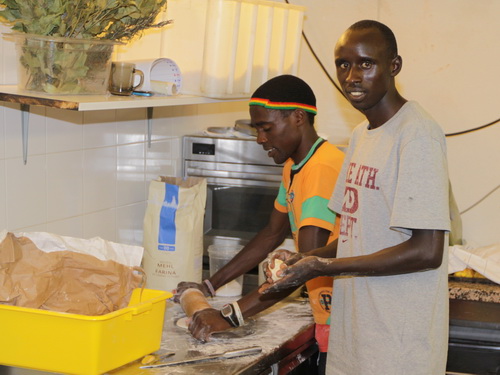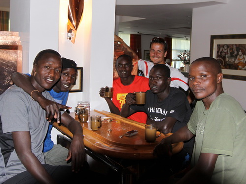 Die Läufer sind keineswegs abgeschottet, wie man vermuten könnte. Der junge Trainer Claudio Prandelli legt zwar großen Wert auf Disziplin und genießt den größten Respekt, andererseits ist er für die Läufer wie ein Bruder. Nach getaner Arbeit sind alle sehr zugänglich und ich habe den Eindruck, sie sind für eine gewisse Abwechslung richtig dankbar. „Hey, marathon4you, Foto machen“, rufen sie, egal, ob sie gerade beim Tee zusammen sitzen oder die Küche belegen, weil sie Fladen backen.